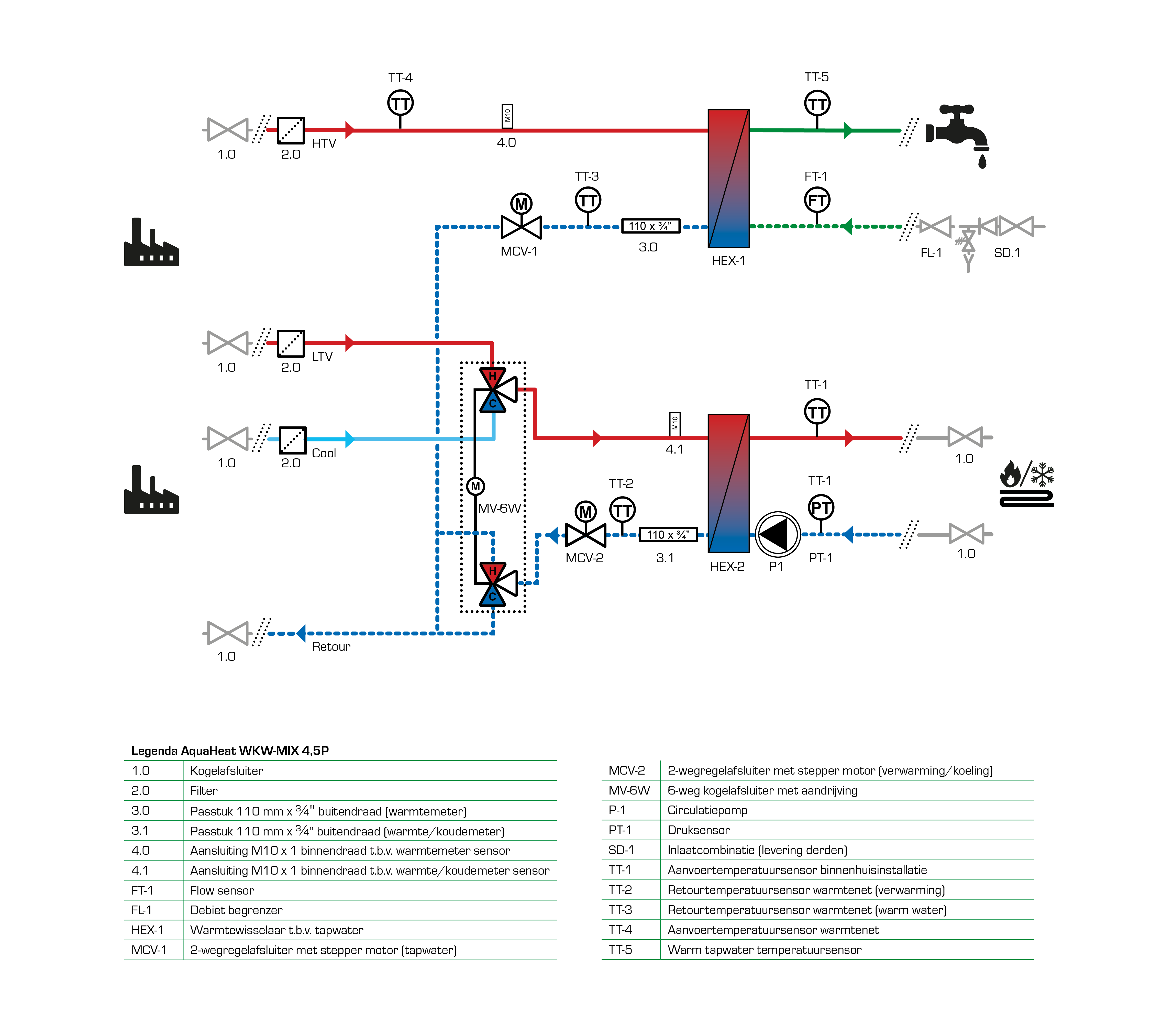 • > Het leveren van warm- of koelwater